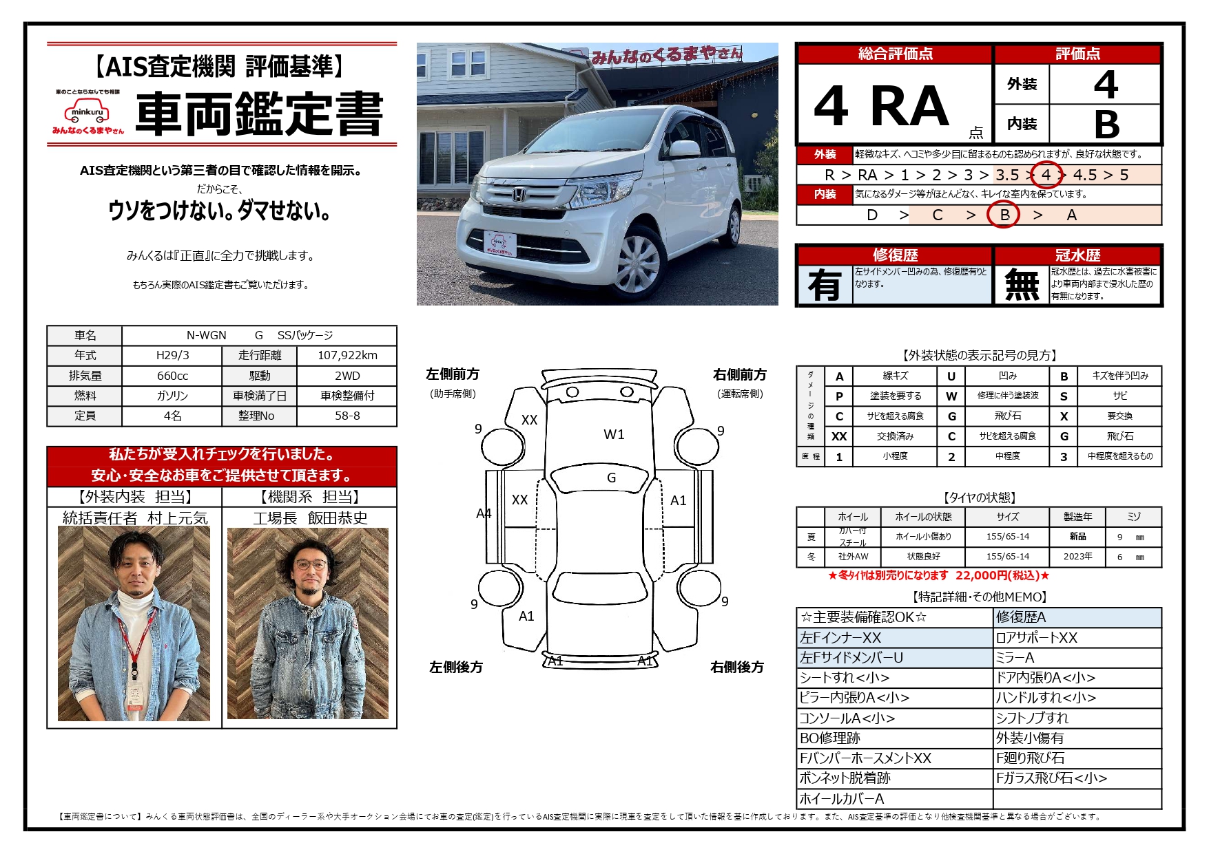 「ネットでNワゴンを見て欲しくなり来店し現車確認していて右隣に有ったワゴンRの艶に魅力を感じ購入と成りました。ありがとうございます。」