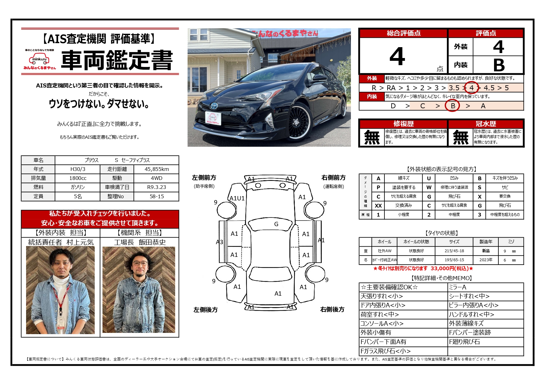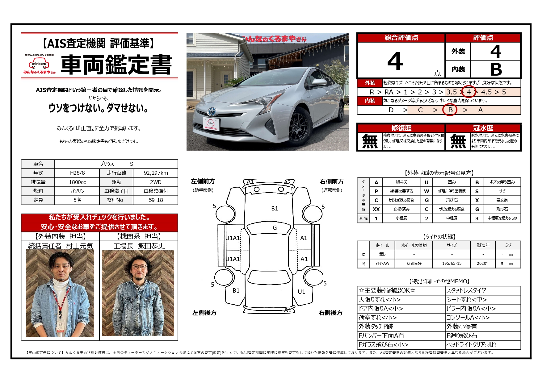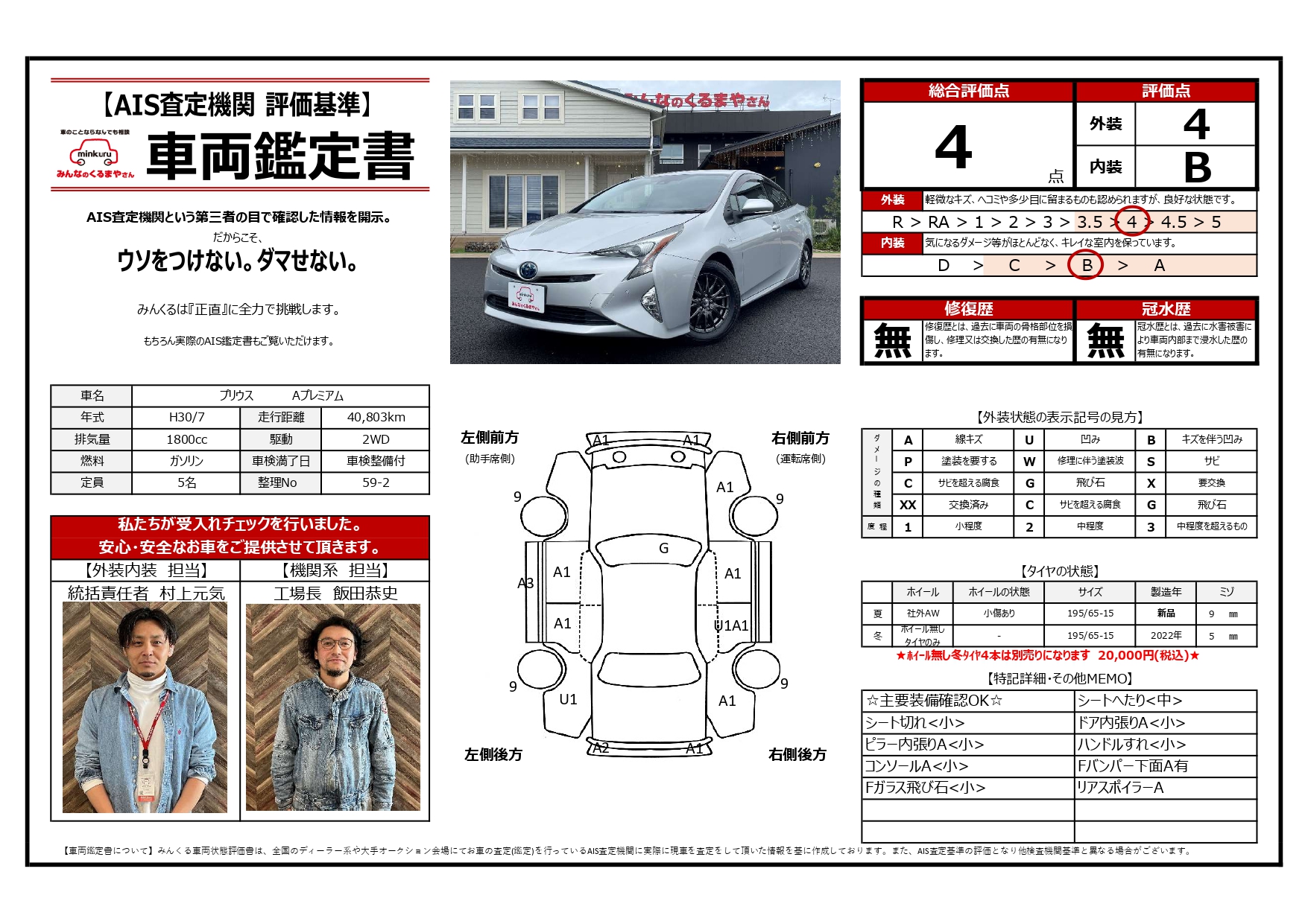 「プリウス購入ですごくスムーズに対応頂き大変ありがとうございました。 色々悩んでプリウスにしたのですが、色々考えて結局みんなのくるま屋さんが1番対応が素晴らしかったので、こちらで決めました。 最後迄素晴らしい対応ありがとうございました。 今後とも宜しくお願い致します。」